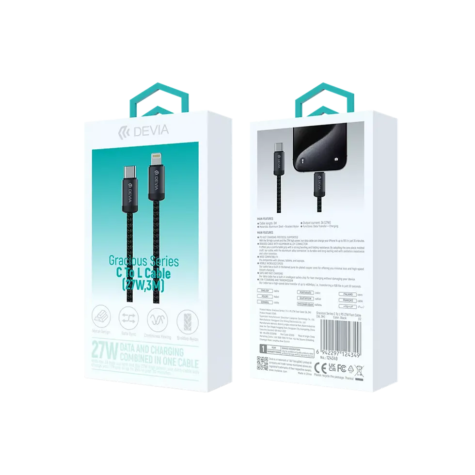 Devia - 3m (27W) Mesh Armour USB-C to Non-MFI Lightning Cable - Black